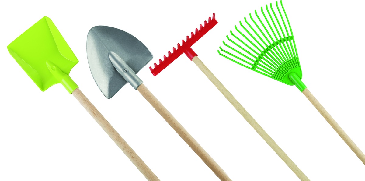 Sada obsahuje: lopatu, rýč, hrábě rovné a hrábě švédské. Délka násady 60 cm Materiál: dřevo + plast