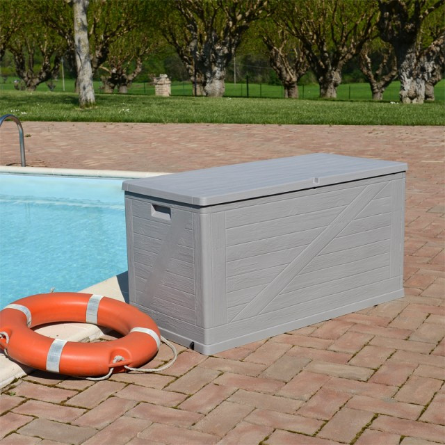 Vhodný na uskladnění nářadí, polstrů a dalšího zahradního materiálu. Box je z jedné strany opatřen kolečky pro snadnou manipulaci.