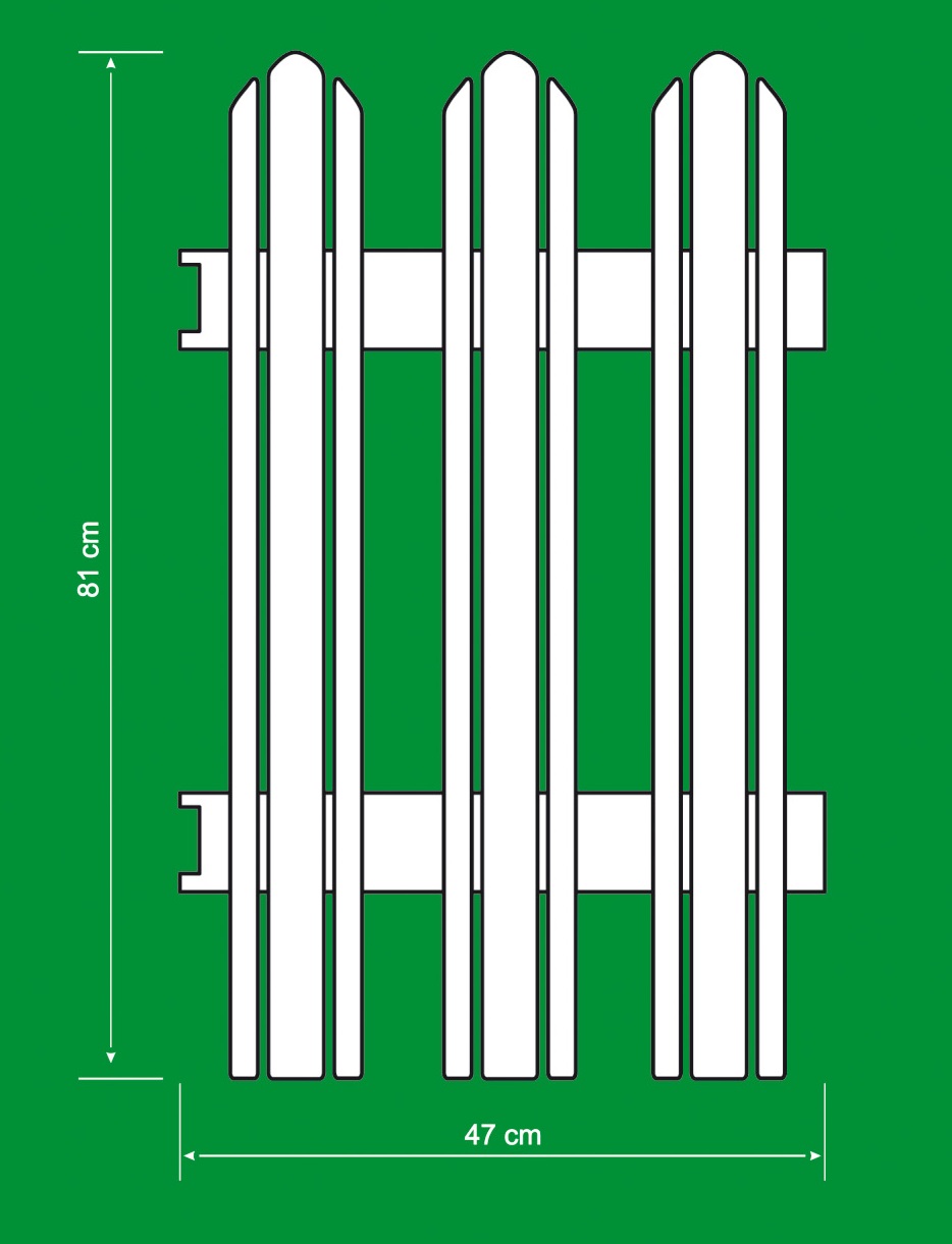 Balení 4,7 m obsahuje 10 dílů, které jednoduchým způsobem připojíte k sobě pomocí spojovacích tyčí a zapíchnete do země. Délka celého balení: 4,7 m Délka 1 dílu: 47 cm Výška: 81 cm Materiál: plast