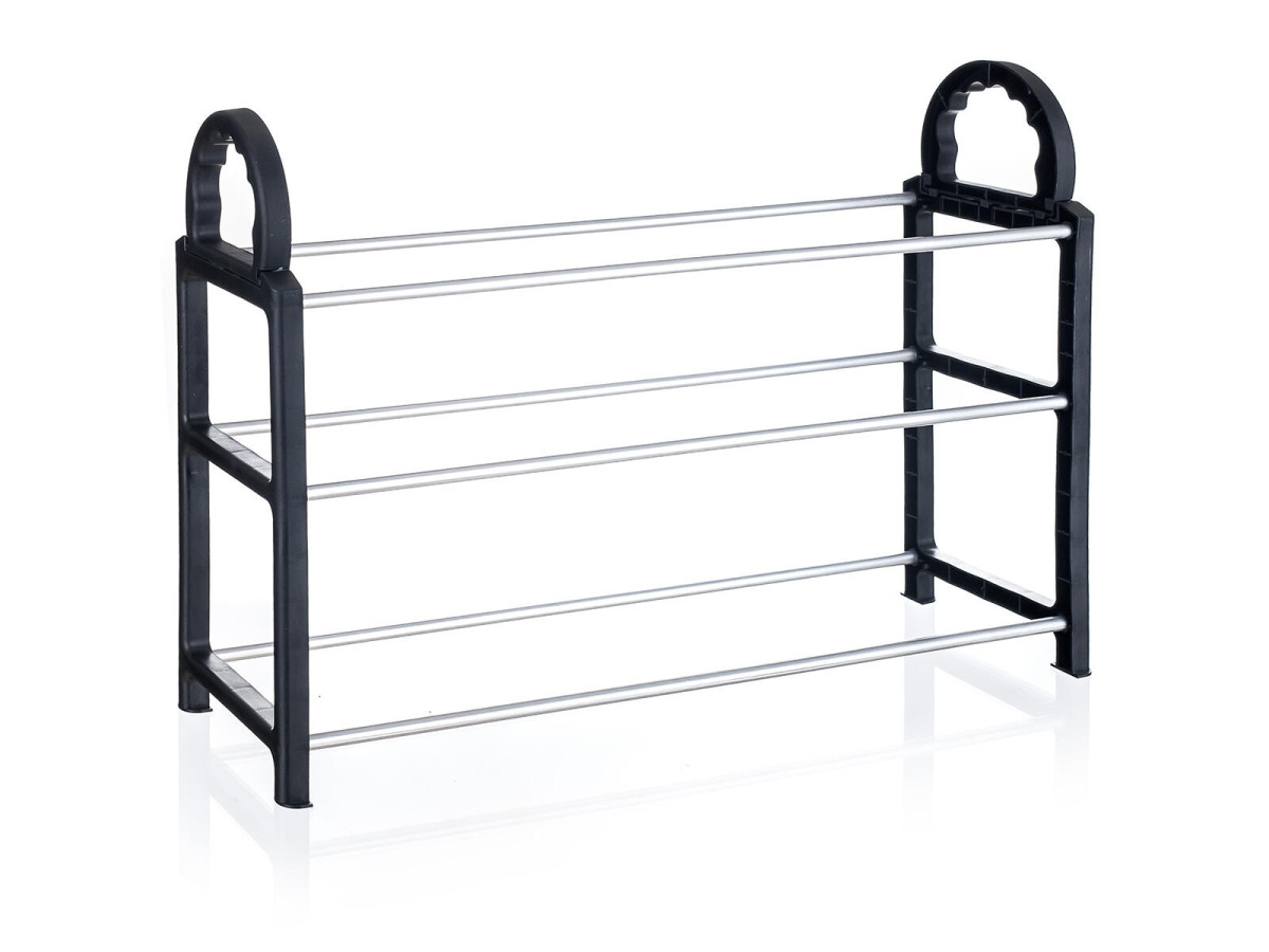 Botník BOLTON 3patrový 65 x 17 x 42 cm, Cr/PH ČER. rozměry: 65 x 17 x 42 cm materiál: chromované trubky, plastové bočníce barva: černá Stojan na boty je praktický pomocník pro ukládání bot. Materiál - chromované trubky a plastové bočnice v černé barvě. Botník lze velmi dobře využít i k vnitřnímu vybavení skříní či šaten. Výška přepravní: 3 cm Šířka přepravní: 19 cm Hloubka přepravní: 65 cm Objem přepravní: 3,705 dm3 Hmotnost přepravní: 0,58 kg Pozor křehké: