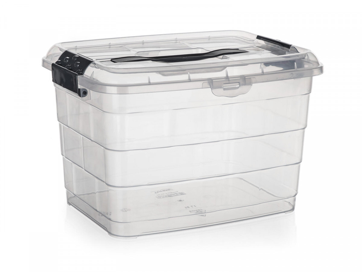 Box úložný VILARD 14 l, 36 x 26 x 23,5 cm, víko, klip, madlo, PH TRA / KOUŘ. objem: 14 l rozměry: 36 x 26 x 23,5 cm materiál: plast barva: transparentní dóza, kouřové ucho a klipy Plastový multifunkční box VILARD, o objemu 8,5 l, s pohodlným uchem, je vhodný nejen pro ukládání předmětů, ale i jejich přepravu. Výška přepravní: 23,5 cm Šířka přepravní: 26 cm Hloubka přepravní: 36 cm Objem přepravní: 21,996 dm3 Hmotnost přepravní: 0,56 kg Pozor křehké: