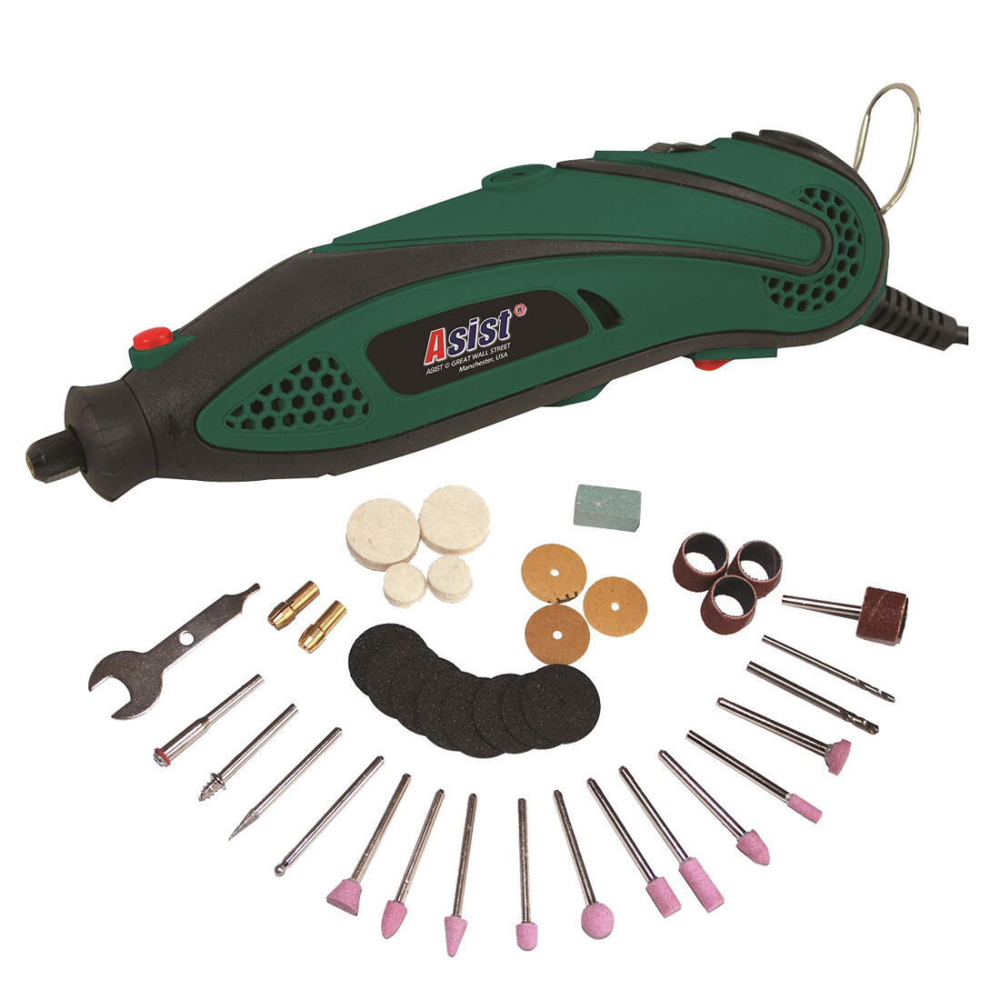 Mini bruska přímá 135 W s příslušenstvím 40díl. ASIST. Skvěle propracovaná přímá bruska ASIST AE3C13DN-BMC představuje univerzální nástroj pro domácí kutily, drobné řemeslníky i na hobby použití. Jedná se o mini brusku s výkonem 135 Wattů a plynulou regulací otáček. Otáčky je možné regulovat v rozmezí 8 000 – 33 000 otáček za minutu. Je vhodná pro opracování jak měkkých, tak i tvrdých materiálů. Skvěle se drží a snadno i rychle v ní vyměníte pracovní nástavce. Navíc k ní obdržíte 41 kusů příslušenství a ohebnou hřídel. Vše je pak úhledně zabaleno v plastovém kufříku. Základní vlastnosti mini brusky ASIST: - Napětí / frekvence: 230 V / 50 Hz - Příkon: 135 W - Volnoběžné otáčky: 8 000 - 33 000 ot./min - Max. průměr upínací kleštiny: 3,2 mm - Hmotnost: 0,60 kg Výhody mini brusky ASIST: Mezi hlavní výhody brusky, patří skvělé držení a bohaté příslušenství. Brusku využijete pro široké spektrum práce s jemnými materiály. Díky plynulé regulaci otáček ji můžete použít na řezání kovu, rytí kovu, vrtání, začišťování hran, broušení, odstranění rzi, leštění dřeva a leštění kovu. Mezi další výhody patří nízká váha, jejichž hodnota čni pouze 600 gramů. To zaručí pohodlný úchop i při dlouhodobé práci. Proč koupit mini brusku ASIST: Koupí této mini brusky získáte vynikající nástroj na univerzální použití, jenž se bude jistě hodit nejen řemeslníkovi, ale i každému domácímu kutilovi či kutilce. Současně s bruskou také získáte 40 kusů nástrojů pro opracování materiálů a navíc ohebnou hřídel. Bruska je flexibilní a to i díky délce přívodního kabelu v délce dvou metrů. Nesmíme zapomenou ani na skvělý záruční a pozáruční servis. Součást balení: 1 x sada příslušenství (40 ks) 1 x plastový kufřík 1 x návod k obsluze Šířka přepravní: 29,9 cm Výška přepravní: 15,3 cm Hloubka přepravní: 7,5 cm Objem přepravní: 3,431025 dm3 Hmotnost přepravní: 1,28 kg Pozor křehké:
