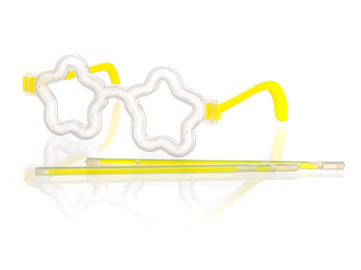 Brýle + 2 náramky 20 cm, svítící, mix barev MY PARTY. náramek rozměry: 5 mm x 20 cm mix barev: zelená, oranžová, modrá, žlutá, červená Fluorescenční brýle ve tvaru hvězdy, které vás nebo vaše děti ozdobí na každé párty. Sada obsahuje: 1 ks černých brýlových obrouček, 2 ks fluorescenčních tvarovatelných náramků v pěti barvách. K rozsvícení brýlí dojde při tvarování fluoresenčních náramků do tvaru brýlí a délka svitu je cca 4 hodiny. Výška přepravní: 1 cm Šířka přepravní: 10 cm Hloubka přepravní: 25 cm Objem přepravní: 0,25 dm3 Hmotnost přepravní: 0,019 kg Pozor křehké: