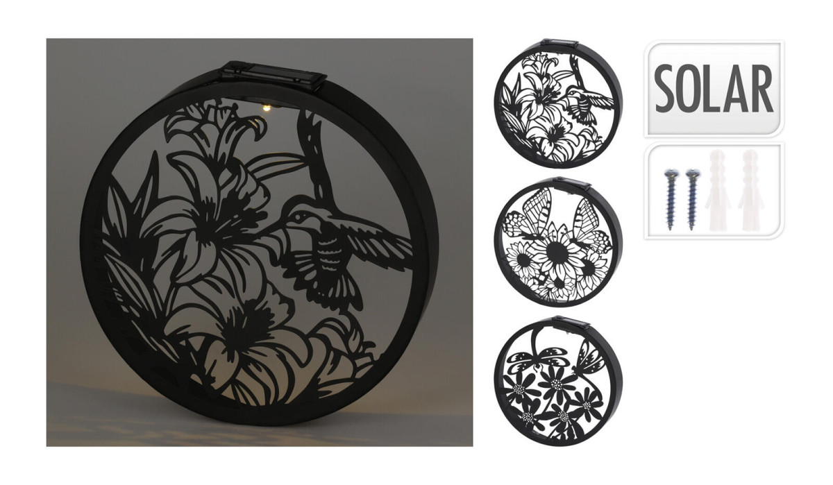 dekorace na zeď kruh.solární LED pr.25x5cm kov.ČER