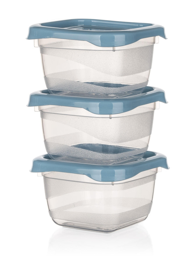 Sada plastových dóz CULINARIA je ideální pro úschovu malých dobrot nebo dresingů. Sada obsahuje 3 dózy s víčky v barvě nordic blue. Dózy jsou vhodné do myčky, mikrovlnky i mrazničky (teplotní rozpětí -20 až +100 st.C). Rozměry dóz: 6,5 x 6,5 x 4 cm. Výška přepravní: 7 cm Šířka přepravní: 7 cm Hloubka přepravní: 7 cm Objem přepravní: 0,343 dm3 Hmotnost přepravní: kg Pozor křehké: