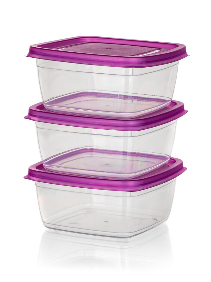 Dóza čtvercová 0,5 l, ACCASA, PH, TRA / FI (3 ks). objem: 0,5 l materiál: plast barva: transparentní dóza, fialové víko balení: 3 ks Dóza na potraviny ACCASA je vhodná pro skladování různých potravin. Dózy jsou vyrobené z plastu a dodávají se s víky ve fialové barvě. Výška přepravní: 9 cm Šířka přepravní: 13 cm Hloubka přepravní: 13 cm Objem přepravní: 1,521 dm3 Hmotnost přepravní: 0,14 kg Pozor křehké: