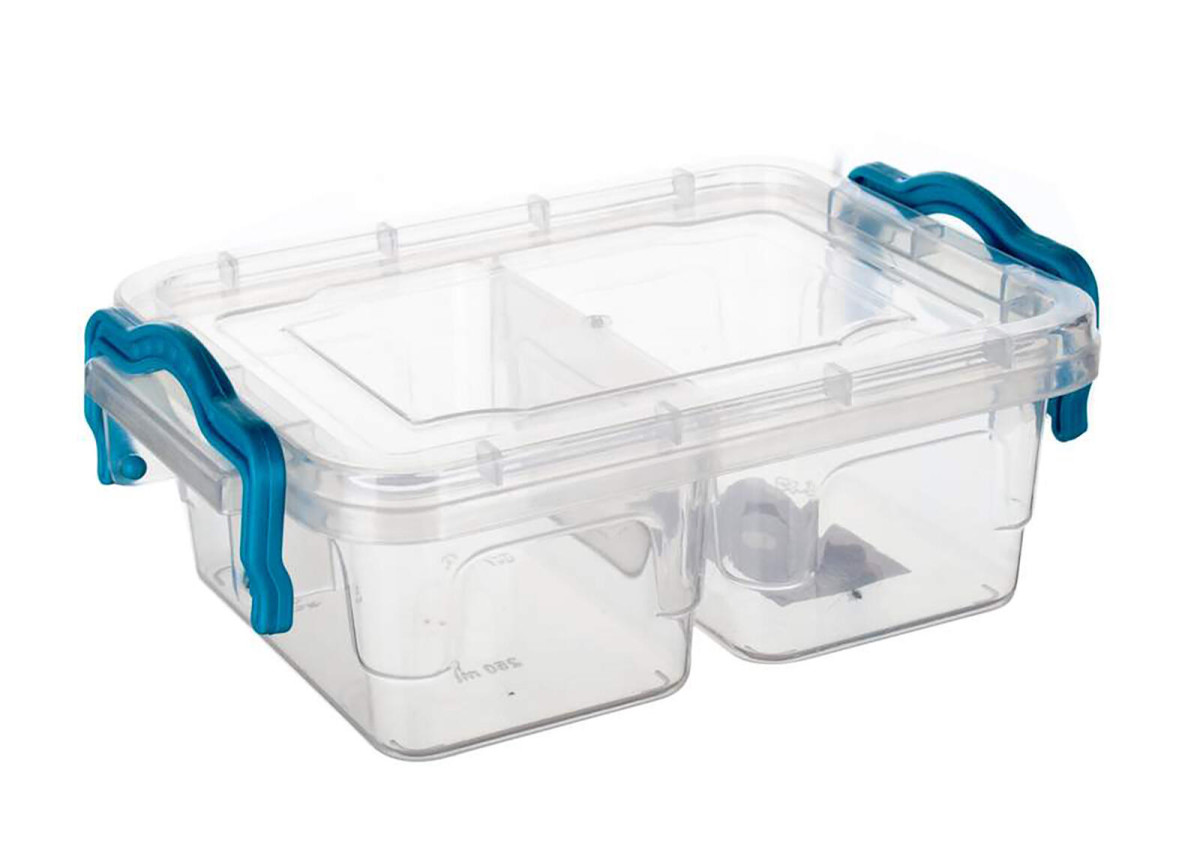 Dóza GEMA, dělená, obdélníková 0,25 + 0,25 l, PH TRA / TYRK madla. objem: 0,25 + 0,25 l materiál: plast barva: transparentní box, tyrkysová madla Dělená dóza GEMA s tyrkysovými madly má široké využití nejen v kuchyni, díky dvěma přihrádkám a transparentnímu provedení je velmi přehledná. Použití v mrazničce do -25 st. C a v mikrovlnné troubě do + 95 st. C. Objem přihrádek je 250 a 250 ml. Výška přepravní: 5,5 cm Šířka přepravní: 11 cm Hloubka přepravní: 16 cm Objem přepravní: 0,968 dm3 Hmotnost přepravní: kg Pozor křehké: