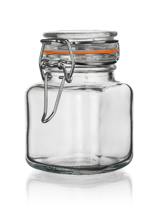 Dóza hermetická 100 ml, hranatá, skleněná, s patentním uzávěrem, LINA. objem: 100 ml materiál: sklo barva těsnění: oranžová Nespornou výhodou skleněné dózy LINA je její použitelnost prakticky na všechny potraviny. Skleněná dóza má těsný hermetický uzávěr, je proto vhodná k uchování sušených či nakládaných potravin. Výška přepravní: 7,5 cm Šířka přepravní: 5 cm Hloubka přepravní: 5 cm Objem přepravní: 0,1875 dm3 Hmotnost přepravní: 0,095 kg Pozor křehké: Ano