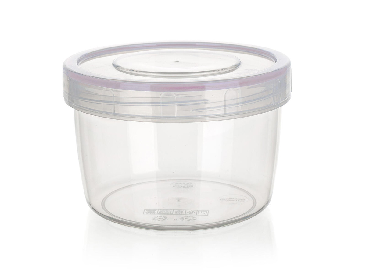 Dóza hermetická LARA, kulatá, 0,5 l, PH. objem: 0,5 l materiál: plast Plastová dóza na potraviny LARA, s růžovým silikonovým těsněním, zajišťuje vzduchotěsnost dózy. Díky tomu zůstávají potraviny dlouho čerstvé. Použití v mrazničce do - 25 st. C a v mikrovlnné troubě do + 95 st. C. Výška přepravní: 7,5 cm Šířka přepravní: 11 cm Hloubka přepravní: 11 cm Objem přepravní: 0,9075 dm3 Hmotnost přepravní: 0,048 kg Pozor křehké: