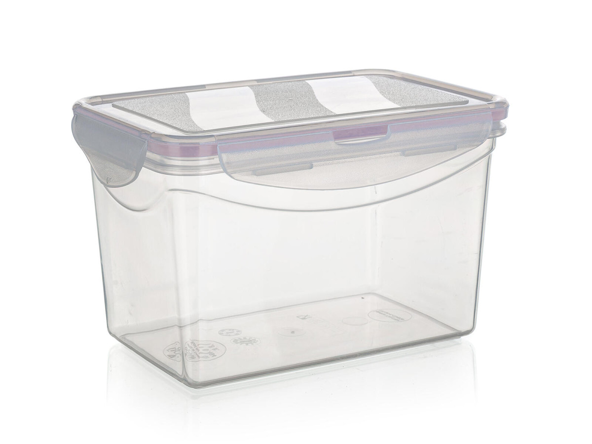 Dóza hermetická LARA, obdélníková, 1,8 l, PH. objem: 1,8 l materiál: plast Plastová dóza na potraviny LARA, s růžovým silikonovým těsněním, zajišťuje vzduchotěsnost dózy. Díky tomu zůstávají potraviny dlouho čerstvé. Použití v mrazničce do - 25 st. C a v mikrovlnné troubě do + 95 st. C. Výška přepravní: 12 cm Šířka přepravní: 13 cm Hloubka přepravní: 20 cm Objem přepravní: 3,12 dm3 Hmotnost přepravní: 0,19 kg Pozor křehké: