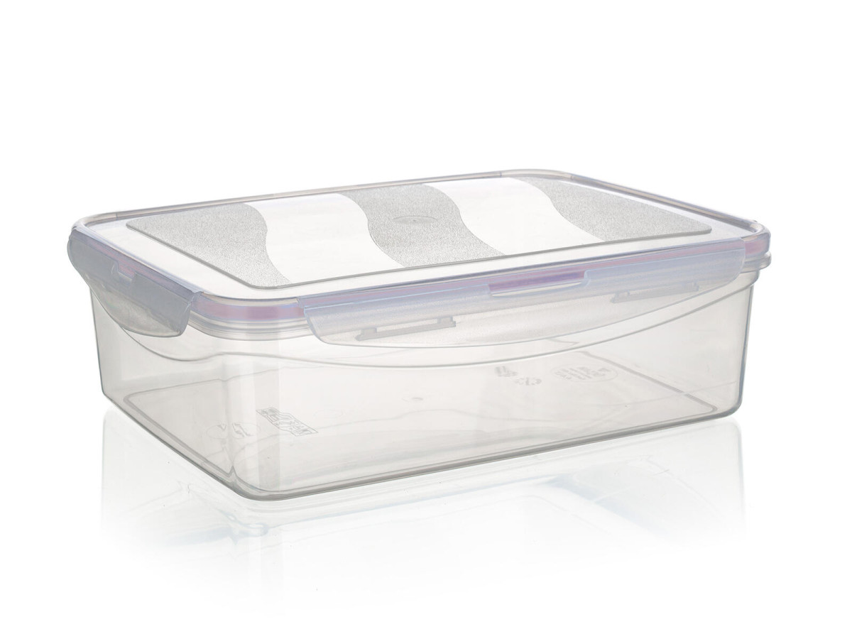 Dóza hermetická LARA, obdélníková, 4,4 l, PH. objem: 4,4 l materiál: plast Plastová dóza na potraviny LARA, s růžovým silikonovým těsněním, zajišťuje vzduchotěsnost dózy. Díky tomu zůstávají potraviny dlouho čerstvé. Použití v mrazničce do - 25 st. C a v mikrovlnné troubě do + 95 st. C. Výška přepravní: 9,5 cm Šířka přepravní: 24 cm Hloubka přepravní: 31 cm Objem přepravní: 7,068 dm3 Hmotnost přepravní: 0,39 kg Pozor křehké: