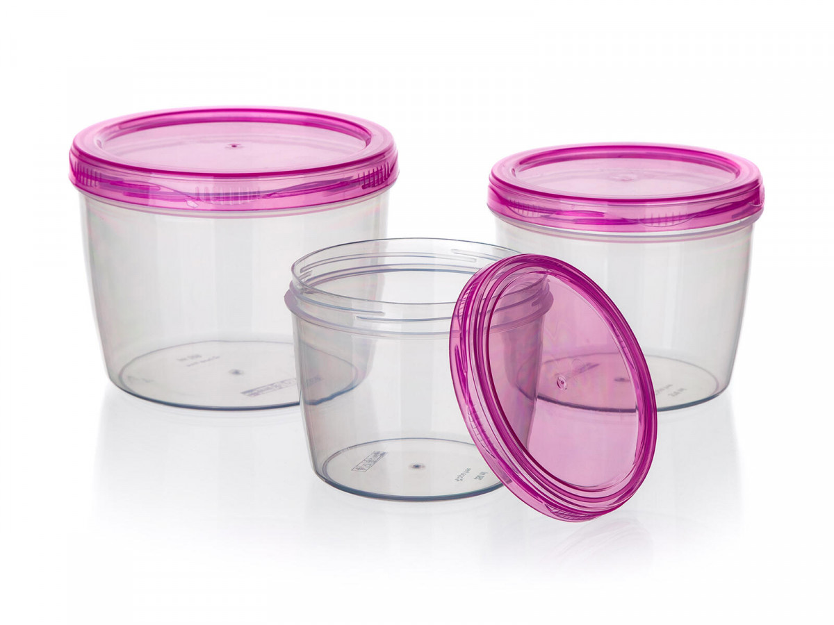 Dóza kulatá, sada 3díl. (0,25. 0,37. 0,6 l) PH. sada obsahuje dózy o objemu: - 0,25 l - 0,37 l - 0,6 l Sada plastových dóz ACASSA, ve třech velikostech 250 ml, 370 ml a 600 ml, je vhodná pro skladování potravin a hotových jídel. Dózy jsou vyrobené z odolného plastu a vhodné do myčky na nádobí, mrazáku i mikrovlnné trouby. Výška přepravní: 8,5 cm Šířka přepravní: 11 cm Hloubka přepravní: 11 cm Objem přepravní: 1,0285 dm3 Hmotnost přepravní: 0,102 kg Pozor křehké: