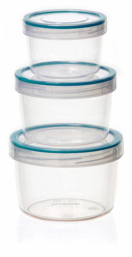 Dóza kulatá, sada 3díl. (0,25. 0,5. 0,7 l) PH. sada obsahuje 3 dózy: - objem 0,25 l, pr. 9 x 6 cm - objem 0,6 l, pr. 11,2 x 7,5 cm - objem 0,7 l, pr. 12,5 x 8,5 cm materiál: plast, silikon Sada plastových dóz na potraviny JANICE, s tyrkysovým silikonovým těsněním, který zajišťuje vzduchotěsnost dózy. Díky tomu zůstávají potraviny dlouho čerstvé. Použití v mrazničce do -25 st .C a v mikrovlnné troubě do + 95 st. C. myčka: ano mikrovlnka: ano Výška přepravní: 8,5 cm Šířka přepravní: 13 cm Hloubka přepravní: 13 cm Objem přepravní: 1,4365 dm3 Hmotnost přepravní: 0,165 kg Pozor křehké: