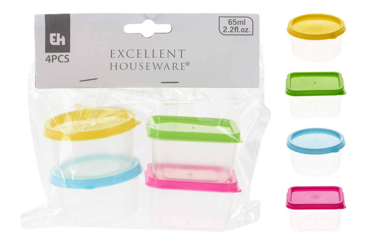 Dóza mini 65 ml, sada 4díl. (2 x kulatá, 2 x čtvercová) PH mix barev. sada obsahuje: 2 x kulatá dóza 2 x čtvercová dóza objem: 65 ml rozměry: 6,2 x 3,5 cm materiál: polypropylen barva: transparentní / žluté, růžové, modré, zelené víčko Plastové krabičky jsou idealní pro uchování potravin. V nabídce jsou dva možné tvary a čtyři barevná víčka: modrá, růžová, žlutá a zelená. Výška přepravní: 12 cm Šířka přepravní: 6 cm Hloubka přepravní: 15 cm Barva: Objem přepravní: 1,08 dm3 Hmotnost přepravní: 0,026 kg Výška: 0 cm Materiál: Šířka: 0 cm Licence: Průměr: cm Elektroodpad: Zobrazení času: Určení nábytku: Listingový popis: Výbava: Typ: Typ strojku: Pozor křehké: