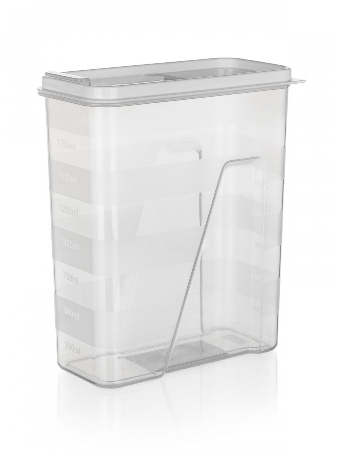 Dóza na sypké potraviny 2,0 l, PH, otevírací víčko BÍ. objem: 2 l materiál: plast barva: transparentní dóza, bílé víčko Transparentní dávkovací plastová dóza Culinaria s víčkem v bílé barvě. Dóza je praktickým pomocníkem na ukládání těstovin, luštěnin, mouky a jiných potravin. Opatřena měřící ryskou s odstupem 250 ml. Výška přepravní: 22,5 cm Šířka přepravní: 9 cm Hloubka přepravní: 19 cm Objem přepravní: 3,8475 dm3 Hmotnost přepravní: 0,16 kg Pozor křehké: