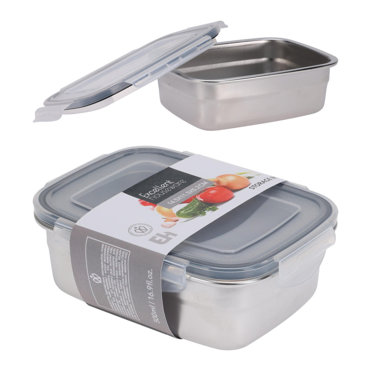 Dóza obdélníková, 14,5 x 11,5 x 5,2 cm, 0,5 l, nerez + PH víčko s klick uzávěrem. rozměry (D x Š x V): 14,5 x 11,5 x 5,2 cm objem: 0,5 l hmotnost: 132 g materiál: nerez, plastové víčko klick uzávěr Nerezová krabička je vhodná na uskladnění potravin. Výška přepravní: 5,2 cm Šířka přepravní: 11,5 cm Hloubka přepravní: 14,5 cm Barva: Objem přepravní: 0,8671 dm3 Hmotnost přepravní: 0,119 kg Výška: 0 cm Materiál: Šířka: 0 cm Licence: Průměr: cm Elektroodpad: Zobrazení času: Určení nábytku: Listingový popis: Výbava: Typ: Typ strojku: Pozor křehké: