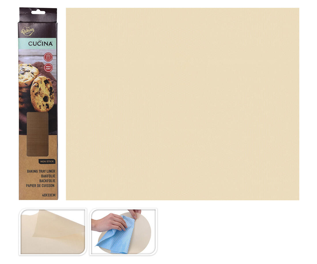 Pečící fólie 40 x 33 cm / 0,07 mm, do 230°C, nepřilnavý povrch. rozměry: 40 x 33 cm tloušťka: 0,07 mm materiál: nepřilnavý povrch 50 x opakované použití Vynikající jako univerzální oboustranná pečicí podložka do všech obvyklých pekáčů a forem na pečení. Připravované pokrmy se nepřipalují, nelepí. Určeno pro mnohonásobné použití (50 x), odolné do 230°C. Výška přepravní: 40,2 cm Šířka přepravní: 1,5 cm Hloubka přepravní: 8 cm Barva: Objem přepravní: 0,4824 dm3 Hmotnost přepravní: 0,017 kg Výška: 0 cm Materiál: Šířka: 0 cm Licence: Průměr: cm Elektroodpad: Zobrazení času: Určení nábytku: Listingový popis: Výbava: Typ: Typ strojku: Pozor křehké: