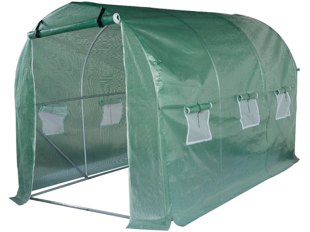 rozměry (D x Š x V): 450 x 200 x 200 cm  Materiál: pozink barva: zelená fólie: 140 g / m2 Fóliovník XXL je určen zejména k ochraně rostlin před výkyvy počasí a k vytvoření vhodného mikroklimatu. Zahradní fóliovník s jednoduchou ocelovou konstrukcí, potaženou kašírovanou folií, má 6 menších oken včetně síťky proti hmyzu, přední dveře, 4 lana a kotvy do země a vyniká velmi jednoduchou montáží - ukotvení do povrchu zahrady.