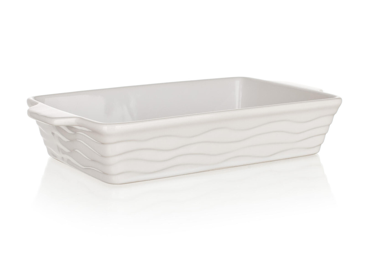 Forma zapékací obdélníková 30 x 17 cm, CULINARIA, keramická, bílá. rozměry: 30 x 17 x 5,7 cm materiál: keramika barva: bílá Obdélníková zapékací forma CULINARIA White. Keramická obdélníková zapékací forma CULINARIA White s praktickými držadly pro snadnou manipulaci. Vnější strana formy má vlnkový reliéf. Keramické formy rovnoměrně absorbují teplo a postupně ho uvolňují, díky čemuž se pokrmy dobře propečou. elektrika: ne plyn: ne sklokeramika: ne indukce: ne myčka: ano mikrovlnka: ano trouba: ano Výška přepravní: 5,8 cm Šířka přepravní: 18 cm Hloubka přepravní: 31 cm Objem přepravní: 3,2364 dm3 Hmotnost přepravní: 1,27 kg Pozor křehké: Ano GPSR: