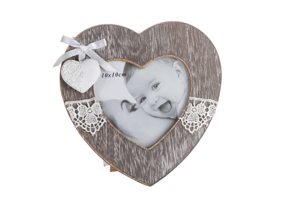 Rámeček s krajkou LACEWORK o rozměru 15 x 15 x 2 cm na fotografii o velikosti 10 x 10 cm,, tvar srdce je vhodný k dekorování bytu. Ozdobné rámečky na fotky vytváří atmosféru útulného domova. Výška přepravní: 2 cm Šířka přepravní: 16 cm Hloubka přepravní: 16 cm Objem přepravní: 0,512 dm3 Hmotnost přepravní: 0,114 kg Pozor křehké: