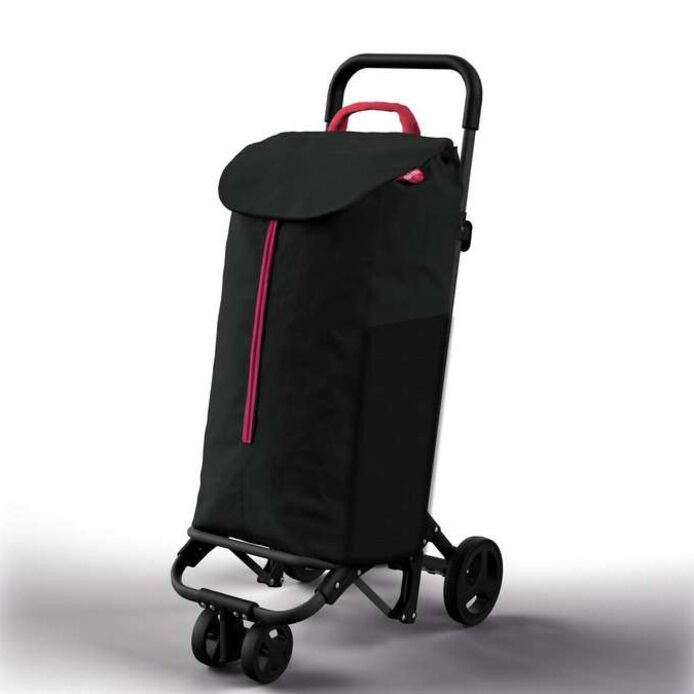 Gimi Twin je pěkný 4-kolečkový nákupní vozík v moderním italském designu s rámem z oceli a pryskyřice a s polyesterovou taškou o objemu 52 litrů. Taška je odolná a nepromokavá, se zapínáním na stahovací šňůrku. Celý prostorný vak lze pohodlně sejmout z rámu a vyprat. Skládací rám je opatřen dohromady čtyřmi plastovými kolečky. Zadní kolečka mají průměr 15 cm, přední 10 cm. 2+2 kolečka nákupní tašky zajišťují všestranné použití - jsou ideální pro tlačení nebo táhnutí podle potřeby.