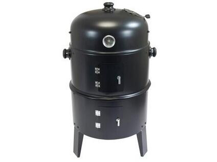 Gril multifunkční 3 v 1, pr. 40 cm,, výška 75 cm. průměr: 40 cm výška: 75 cm Multifunkční gril 3 v 1, s průměrem roštu 40 cm, ocení milovníci dobrého jídla. Gril 3 v 1 umožňuje udit, grilovat i opékat. Pokrm je tepelně připravován nad nádobou s vodní lázní pomocí tepla a dýmu. Tím nedochází ke vzniku zdraví škodlivých látek, které by se jinak dostávaly do pokrmů. Gril se skládá ze tří částí: ohniště, vyšší gril, uzavř. udírna. Dvě části mají dvířka pro přikládání a kontrolu ohně, vrchní část teploměr do 300 st. C, 2 tyče pro zavěšení uzených pokrmů a otvor pro vypouštění kouře. Šířka přepravní: 26 cm Výška přepravní: 45 cm Hloubka přepravní: 45 cm Objem přepravní: 52,65 dm3 Hmotnost přepravní: 6,91 kg Pozor křehké: