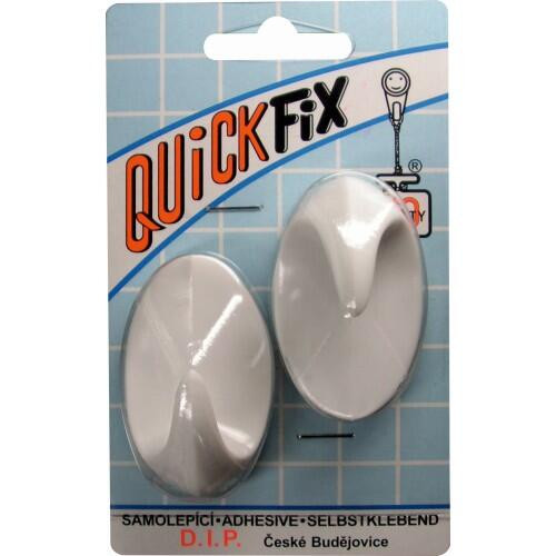 Háček qf samolepicí ovál PH BÍ (2 ks). materiál: plast barva: bílá balení: 2 ks Plastový závěsný háček. Jeho součástí je samolepicí páska, kterou jednoduše přilepíte háček na stěnu. Je vhodný spíše na nepórovité povrchy jako dlaždice, sklo, plast nebo laminát. Využití nalezne především v koupelně, předsíni nebo kuchyni. Šířka přepravní: 8 cm Výška přepravní: 9,5 cm Hloubka přepravní: 34,5 cm Objem přepravní: 0,312 dm3 Hmotnost přepravní: 0,02 kg Pozor křehké: