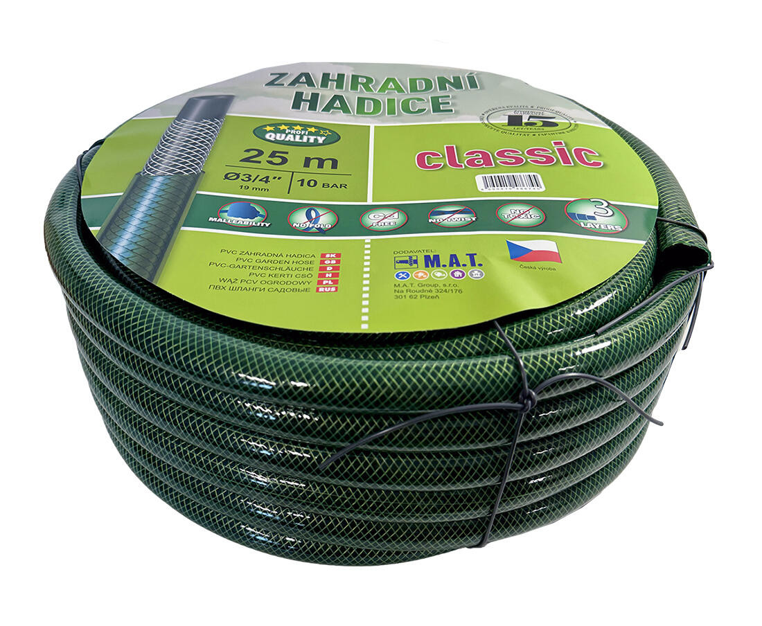 Hadice 1188 3/4" (19.0 / 26.0) (25 m), neprůhledná ZE. rozměry: 3/4" délka: 25 m barva: zelená, neprůhledná Hadice je vhodná k použití na zahradě a v zemědělství. Výška přepravní: 15 cm Šířka přepravní: 41 cm Hloubka přepravní: 41 cm Objem přepravní: 25,215 dm3 Hmotnost přepravní: 6 kg Distribuce: Průměr hadice (palce): Typ hadice: Délka: 0 m Tloušťka: 0 mm Listingový popis: Pozor křehké: