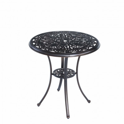 Okrouhlý hliníkový zahradní stolek v antickém stylu, práškově lakovaný, kombinuje elegantní design s vysokou odolností. Je odolný vůči povětrnostním vlivům, lehký, stabilní a pohodlný na používání. Skvěle se hodí do zahrad, na terasy i do komerčních prostor, nabízí klasický vzhled a komfort odpočinku.