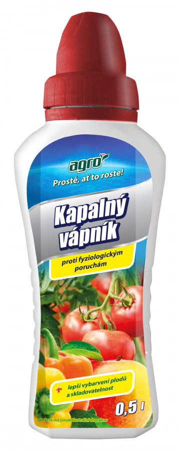Hnojivo AGRO kapalný vápník 0,5 l. objem: 0,5 l AGRO Kapalný vápník je speciální jednosložkové hnojivo určené pro všechny rostliny pěstované na zahradě ve volné půdě i v pěstebních nádobách, které trpí zjevným nedostatkem vápníku projevující se fyziologickou poruchou plodů - suchou hnilobou, černáním pupků rajčat, skvrnitostí apod.  Použití hnojiva: Při nedostatku vápníku: Aplikace se provádí postřikem na list v dávce 20 ml/1 l vody – vystačí na cca 50 m2. Ošetření je potřeba vícekrát opakovat v deseti - až čtrnáctidenních intervalech. Preventivní doplňková výživa postřikem: Postřikem na nadzemní části rostlin, hlavně je potřeba docílit ošetření plodu.  POZOR: Hnojivo má herbicidní účinek – při porušení zásad aplikace, při předávkování apod. hrozí riziko nevratného poškození rostlin. Používejte přípravky na ochranu rostlin bezpečně. Před použitím si vždy přečtěte označení a informace o přípravku. Výška přepravní: 22,32 cm Šířka přepravní: 15,22 cm Hloubka přepravní: 23,22 cm Objem přepravní: 7,888075488 dm3 Hmotnost přepravní: 0,5 kg Hmotnost: 0 g Objem: 0 ml Listingový popis: Druh pesticidů (hubení): Typ: Pozor křehké: