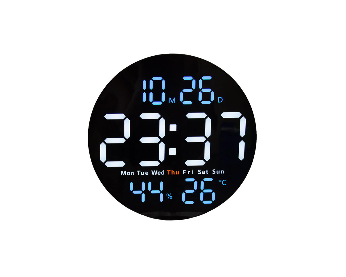 Hodiny nástěnné, digitální, pr. 25 cm, PH ČER. rozměry: 25,2 x 25,2 x 2,8 cm hmotnost: 500 g materiál: akryl, plast barva: černá LED displej číslice: arabské napájení: 2 x baterie AAA, nejsou součástí dodávky LED displej s velkými a jasnými číslicemi usnadňují čtení času na dálku. Hodiny zobrazují datum (den a měsíc), den v týdnu (ENG), teplotu, vlhkost, mají dva budíky. Snadná montáž - montážní otvor na zadní straně umožňuje připevnění na zeď. Pohodlná úprava nastavení hodin pomocí dálkového ovládání. Ideální pro domácnost, kuchyň, obývací pokoj, ložnici, kancelář, učebnu a další místa. K napájení hodin slouží USB kabel o délce 2 m. Hodiny mají paměťovou funkci, která uloží Vaše nastavení pro případ výpadku proudu. Možno připojit kabelem do počítače, přes zástrčku DC 5 V, 1 A do sítě nebo do jiného zařízení s portem USB. Dálkové ovládání funguje na baterii CR2025 (obsažena v balení). OBSAH BALENÍ 1 x LED nástěnné hodiny 1 x kabel USB - délka 2 m, (zástrčka DC 5 V, 1 A - není součástí balení) 1 x dálkové ovládání 1 x uživatelská příručka Výška přepravní: 25 cm Šířka přepravní: 25 cm Hloubka přepravní: 3 cm Barva: Objem přepravní: 1,875 dm3 Hmotnost přepravní: 0,455 kg Výška: 0 cm Materiál: Šířka: 0 cm Licence: Průměr: cm Elektroodpad: Zobrazení času: Určení nábytku: Listingový popis: Výbava: Typ: Typ strojku: Pozor křehké: