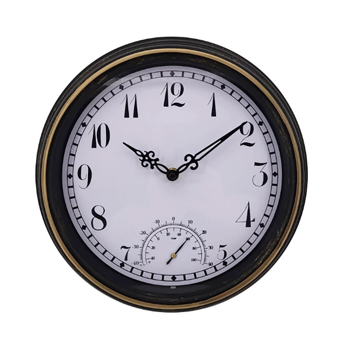 Hodiny nástěnné venkovní, pr. 30 cm, PH, sklo, kov, ČER -ZLA / BÍ. průměr: 30 cm materiál: plastový rám, sklo, kovové ručičky barva: černo - zlatý rám, bílý ciferník Hodiny jsou určeny pro venkovní použití a jsou vodotěsné (IP44). Hodiny mají tichý chod bez výrazného tikání. baterie: 1 x AA (zinko - uhlíková), není součástí hodin Výška přepravní: 6 cm Šířka přepravní: 31 cm Hloubka přepravní: 31 cm Barva: Objem přepravní: 5,766 dm3 Hmotnost přepravní: 0,58 kg Výška: 0 cm Materiál: Šířka: 0 cm Licence: Průměr: cm Elektroodpad: Zobrazení času: Určení nábytku: Listingový popis: Výbava: Typ: Typ strojku: Pozor křehké: