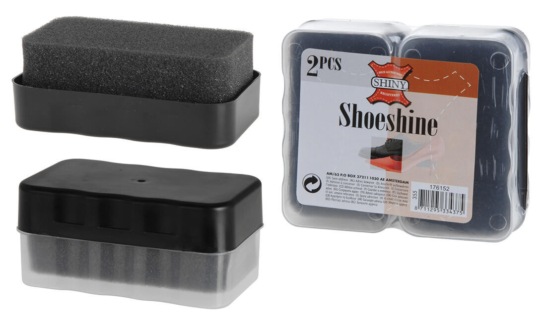 Houbička na čištění obuvi (2 ks). rozměry: 10,4 x 6 x 5 cm hmotnost: 31 g balení: 2 ks Houbička k čištění obuvi. V balení jsou 2 kusy, každá houbička je samostatně balena v plastové krabičce. Šířka přepravní: 10,5 cm Výška přepravní: 5 cm Hloubka přepravní: 12 cm Objem přepravní: 0,63 dm3 Hmotnost přepravní: 0,068 kg Pozor křehké: