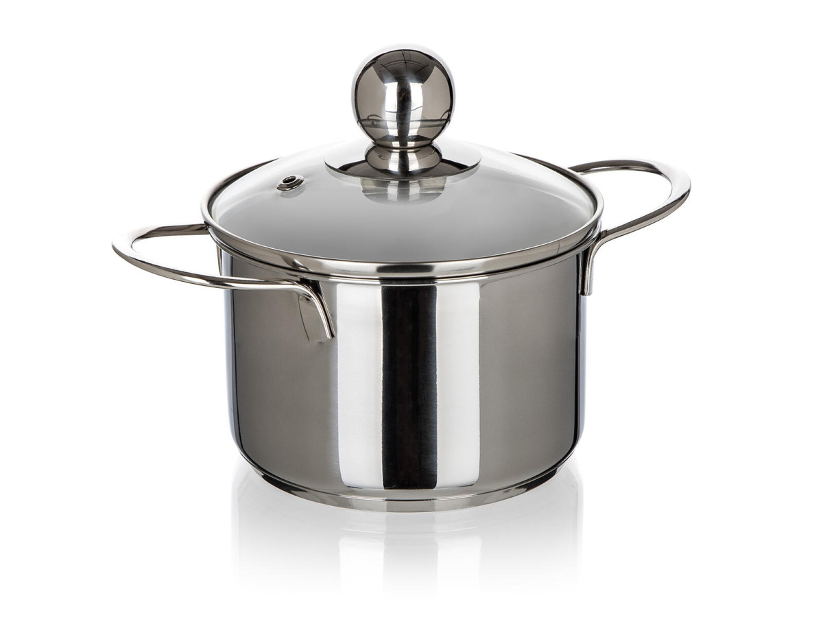 Hrnec 12 cm, se skleněnou poklicí, 0,85 l, nerez, PICCOLO. objem: 0,85 l průměr: 12 cm výška: 8 cm materiál nerez 201 tloušťka stěny: 0,5 mm Nerezový kastrol PICCOLO, se skleněnou poklicí, lze používat na všechny typy varných desek včetně indukce. elektrika: ano plyn: ano sklokeramika: ano indukce: ano myčka: ano mikrovlnka: ne trouba: ano Výška přepravní: 10,5 cm Šířka přepravní: 14 cm Hloubka přepravní: 21 cm Objem přepravní: 3,087 dm3 Hmotnost přepravní: 0,515 kg Pozor křehké:
