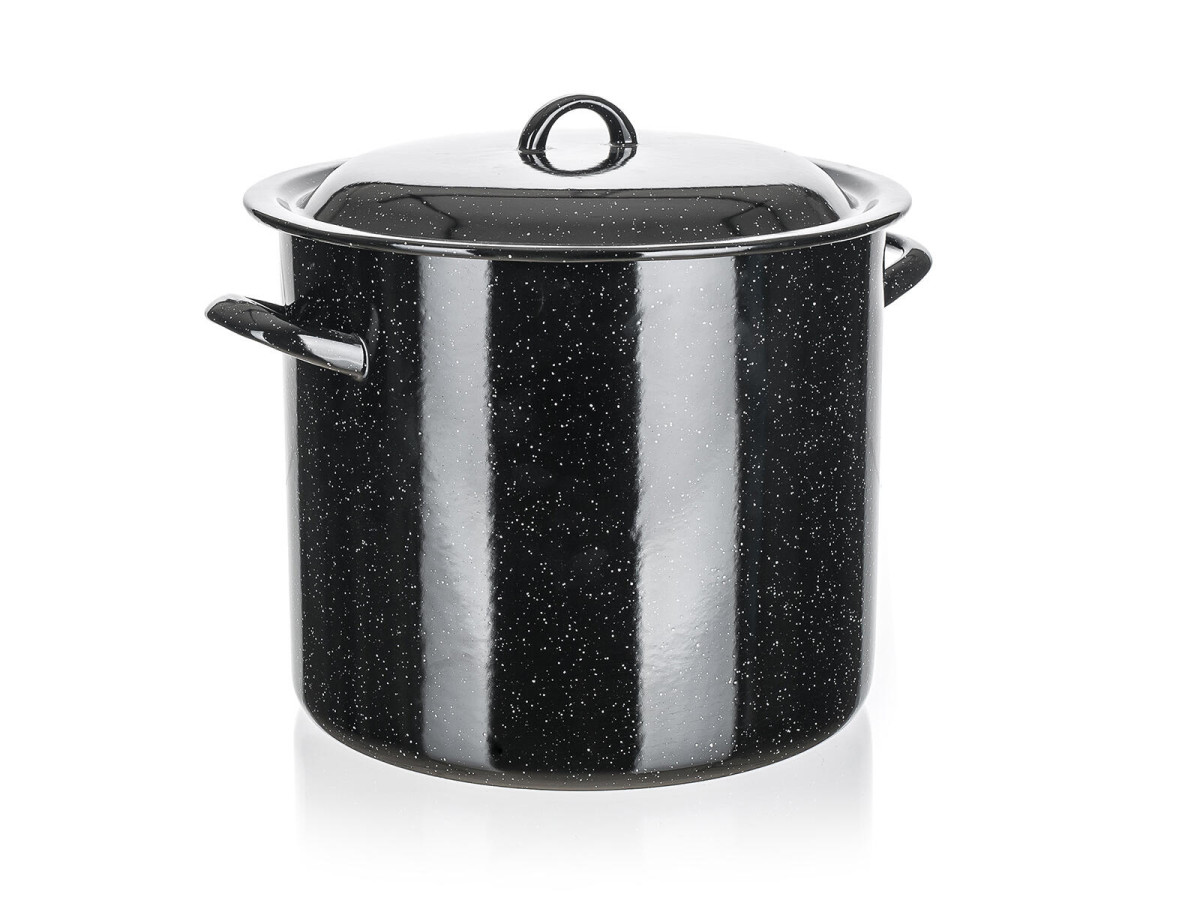 Hrnec + poklice, pr .24 cm, 7,5 l. objem: 7,5 l průměr: 24 cm výška: 16,5 cm Smaltovaný hrnec s poklicí. Hrnec lze používat na všechny typy varných desek mimo indukce. Výška přepravní: 19 cm Šířka přepravní: 27 cm Hloubka přepravní: 33 cm Objem přepravní: 16,929 dm3 Hmotnost přepravní: 1,34 kg Pozor křehké: