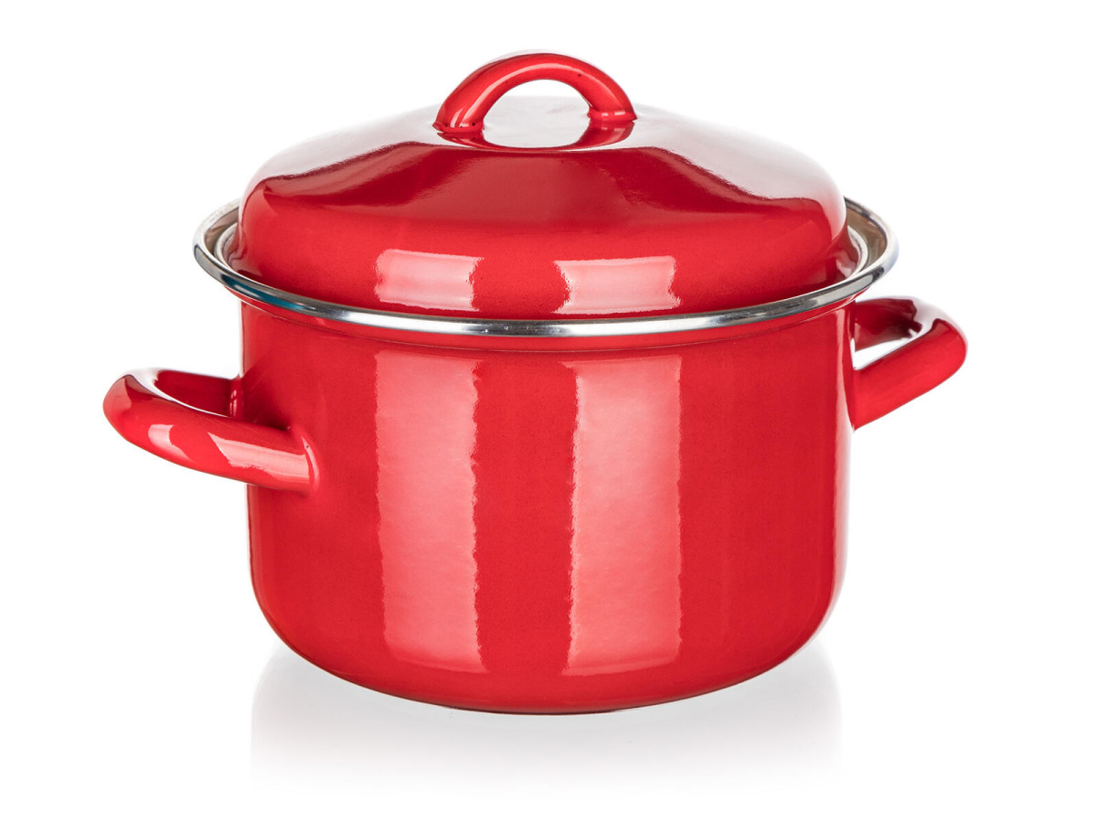 Hrnec + poklice pr. 16 cm, 2 l, MILTON, ČRV. objem: 2 l průměr: 16 cm výška (bez poklice): 10,5 cm materiál: smalt tloušťka stěny: 0,7 mm barva: červená, krémová Poklice i hrnec s červenou smaltovanou glazurou, černým dnem na vnější straně, s krémovou barvou na vnitřní straně. Hrnec lze používat na všechny typy varných desek včetně indukce. elektrika: ano plyn: ano sklokeramika: ano indukce: ano myčka: ne mikrovlnka: ne trouba: ne Výška přepravní: 10,5 cm Šířka přepravní: 20 cm Hloubka přepravní: 20 cm Objem přepravní: 4,2 dm3 Hmotnost přepravní: 0,75 kg Pozor křehké: