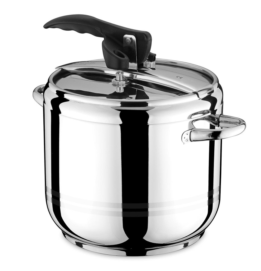 Hrnec tlakový 9 l, AXIO, nerez. objem: 9 l průměr 22 cm materiál: nerez 18/0 3 ventily silné sendvičové dno Nerezový tlakový hrnec s pákovým uzávěrem. Víko obsahuje tři ventily oproti předchozím modelům, hlavní pracovní ventil, bezpečnostní ventil a silikonový ventil pod přítlačnou sponou pro úplně bezpečné použití. Pákový uzávěr je zabezpečený proti náhodnému otevření. Díky speciálnímu tvaru a bezpečnostnímu ventilu nelze tlakový hrnec během vaření otevřít. Tlakový hrnec je určen pro rychlou přípravu pokrmů a lze jej používat na všechny typy varných desek včetně indukce. Hrnec je v silnostěnném celonerezovém provedení, má silné sendvičové dno a lze ho používat na všechny typy varných desek. Výška přepravní: 34 cm Šířka přepravní: 26 cm Hloubka přepravní: 23 cm Objem přepravní: 20,332 dm3 Hmotnost přepravní: 0,01 kg Pozor křehké: