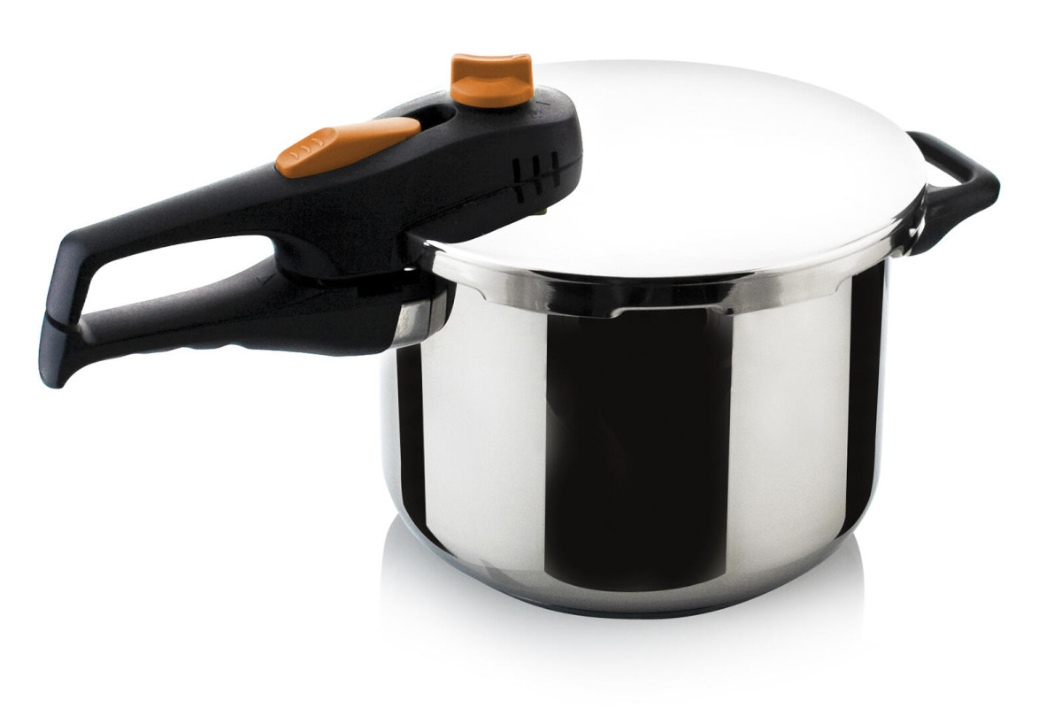 Hrnec tlakový, sada 2díl. 4 l + 6 l, ADAGIO, OR knob, nerez. sada obsahuje: hnec objem 4 l hnec objem 6 l tloušťka dna: 5 mm tloušťka stěny: 1 mm materiál: nerez 18 / 8 Sada nerezových tlakových hrnců ADAGIO 4 / 6 l, s bajonetovým uzávěrem. Poklice obsahuje pracovní ventil, pojistku proti otevření natlakovaného hrnce a silikonové těsnění. Pracovní tlak 0,6 nebo 0,9 bar. Hrnce jsou vyrobeny z pevného a odolného materiálu, mají silné sendvičové dno a jsou vhodné na všechny typy varných desek včetně indukce. Výška přepravní: 31,5 cm Šířka přepravní: 27 cm Hloubka přepravní: 41 cm Objem přepravní: 34,8705 dm3 Hmotnost přepravní: 4,28 kg Pozor křehké: