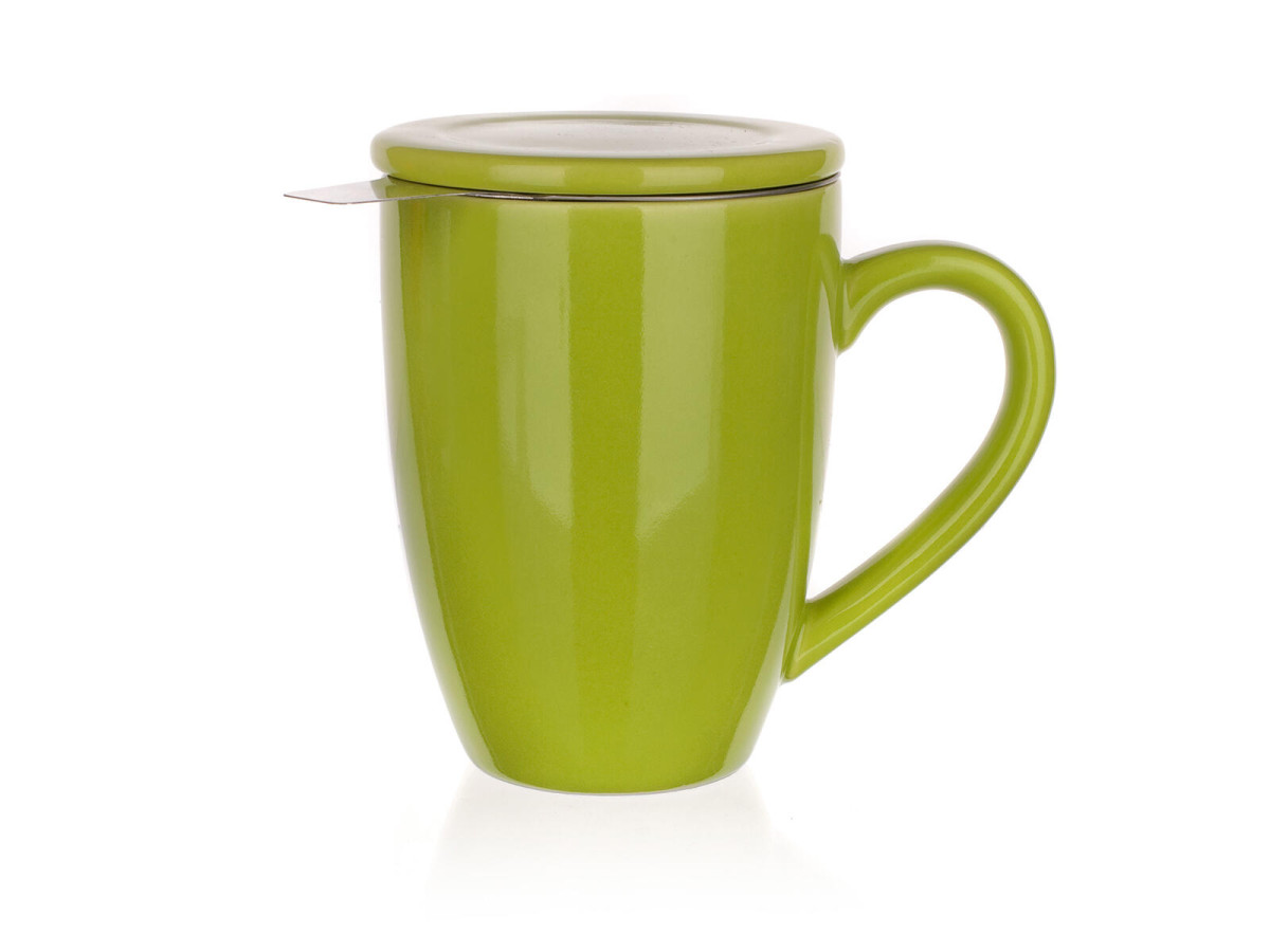 Hrnek s víčkem 350 ml BONNET, zelená glazura, materiál - keramika, nerezové sítko na louhování čaje. Rozměry hrnku: výška 12 cm, průměr 8,5 cm. Hrnek i víčko lze používat do mikrovlnné trouby a mýt v myčce na nádobí. Hrnek s víčkem 350 ml BONNET. materiál: keramika Hmotnost přepravní: 0,542 kg Šířka přepravní: 10 cm Výška přepravní: 13,5 cm Hloubka přepravní: 13 cm Objem přepravní: 1,755 dm3 Pozor křehké: Ano