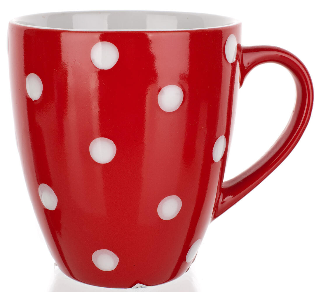 Hrnek 400 ml BAŇÁK, puntíky, keramický ČRV. objem: 400 ml průměr: 9,5 cm výška: 10,5 cm materiál: keramika barva: červená Červený hrnek baňák s puntíky. Hrnek lze používat do mikrovlnné trouby a mýt v myčce na nádobí. Šířka přepravní: 10 cm Výška přepravní: 11 cm Hloubka přepravní: 13 cm Objem přepravní: 1,43 dm3 Hmotnost přepravní: 0,361 kg Pozor křehké: Ano