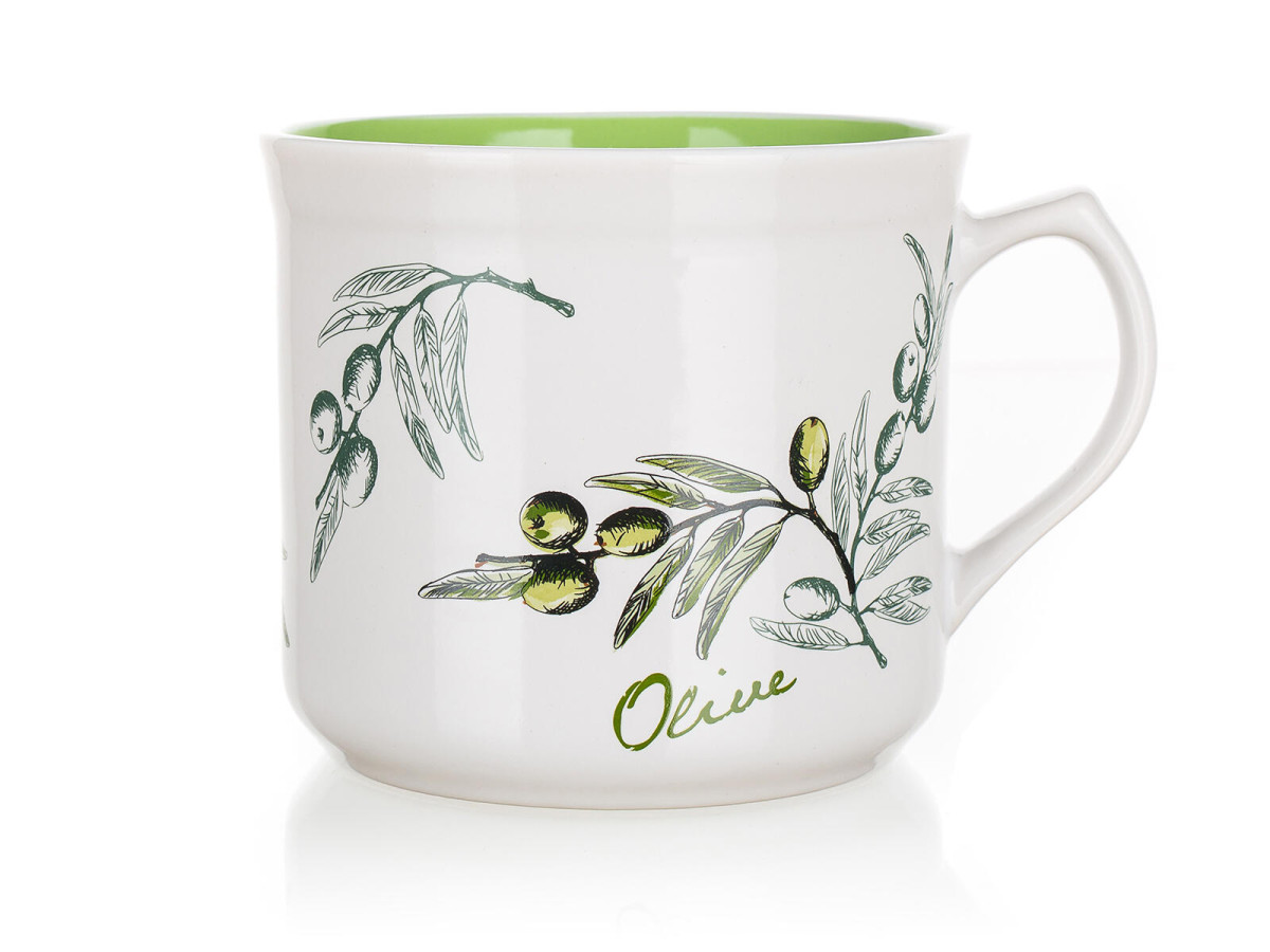Hrnek 630 ml, BIG OLIVES, keramický. objem: 630 ml Hrnek BIG OLIVES je velký keramický hrnek pro podávání horkých i studených nápojů. Je vyrobený z keramiky s dekorem olivy. Výška přepravní: 10 cm Šířka přepravní: 12 cm Hloubka přepravní: 15 cm Objem přepravní: 1,8 dm3 Hmotnost přepravní: 0,45 kg Pozor křehké: Ano