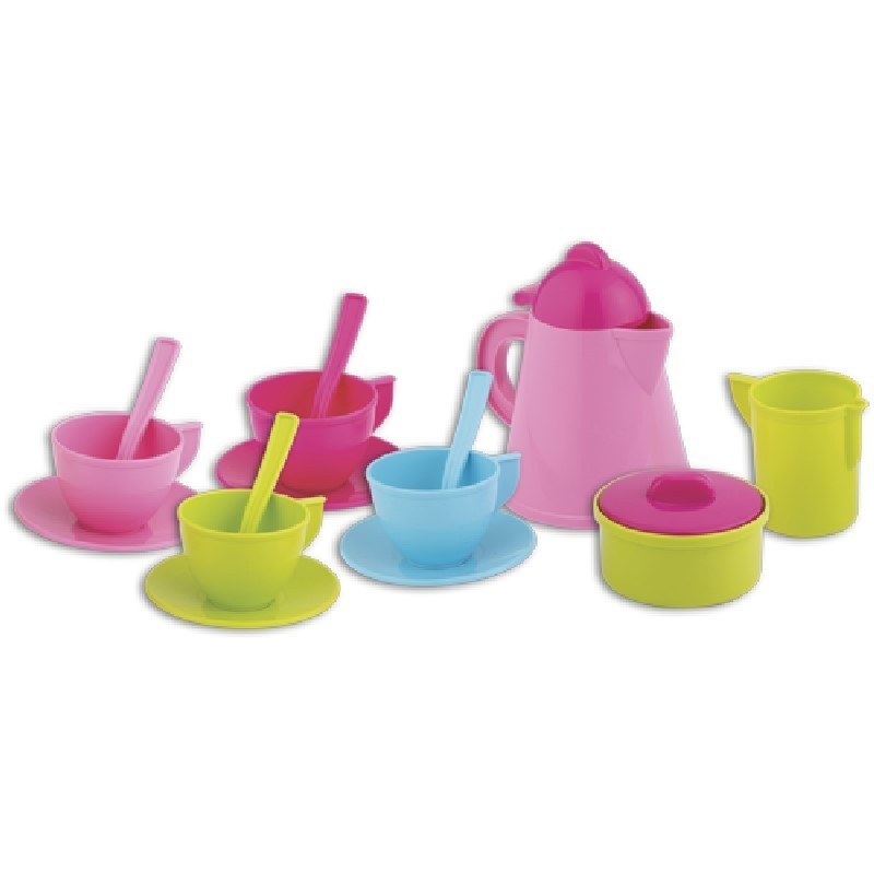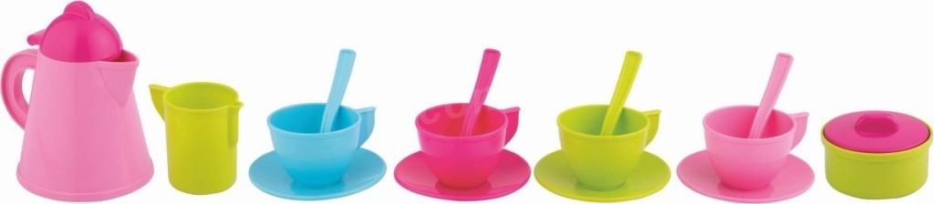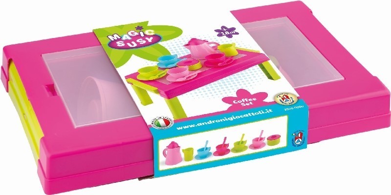Kávová souprava se skládacím, úložným stolečkem, vyrobená z kvalitních plastů v Itálii. Souprava obsahuje: Konvici, 4 hrnečky s podšálky na kávu nebo čaj, 4 kávové lžičky, cukřenku s víčkem, konvičku na mléko a snadno rozložitelný stolek, který zároveň slouží i jako úložný box. Rozměry rozloženého stolku 41 x 26 x 22 cm (d x š x v), rozměry složeného stolku - boxu: 41 x 24,5 x 10 cm (d x š x v). Doporučený věk od 18 měsíců.