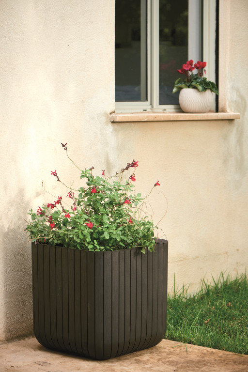 Květináč CUBE PLANTER M kombinuje moderní design s tradiční funkčností. Speciálně navržená povrchová textura ideálně napodobuje přírodní dřevo. Klasická barevná paleta a zajímavý tvar umožňují, aby se tento květináč hodil do jakékoli zahrady, bez ohledu na její původní koncepci uspořádání. Díky použití vysoce kvalitních materiálů je květináč odolný i vůči povětrnostním vlivům.