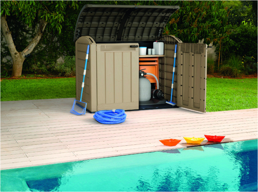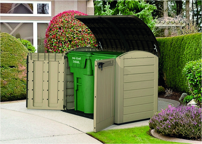 Prostorná skříň STORE IT OUT ULTRA je vynikajícím řešením pro uložení zahradní techniky, popelnic (dvě popelnice o objemu 360 L), příslušenství a nářadí, ale i různých druhů domácích potřeb. Pojme i vybavení pro volný čas, jako jsou jízdní kola a zahradní nábytek atd.