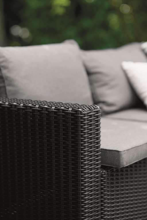 California Chaise je elegantní sada nábytku s ratanovou texturou, která se skládá z křesla, podnožky s polštářem a čtvercového stolu. Kompletní sada nábytku vám zaručí příjemné letní chvíle na zahradě nebo na terase. Výrobky jsou vybaveny měkkými polštáři v moderních barvách. Stabilní nábytek se velmi snadno čistí. Je odolný vůči dlouhodobým vlivům povětrnostních podmínek a UV záření.