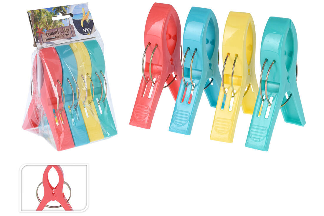 Klip na plážovou osušku 12 x 8,5 x 2 cm, mix barev (4 ks). rozměry: 12 x 8,5 x 2 cm matriál: plast mix barev: modrá, červená, žlutá Klipy k uchycení ručníku na plážové lehátko. Jsou větruodolné a extra silné, lze jimi uchytit i přikrývky nebo prostěradla. Šířka přepravní: 13 cm Výška přepravní: 10 cm Hloubka přepravní: 19 cm Objem přepravní: 2,47 dm3 Hmotnost přepravní: 0,067 kg Pozor křehké: