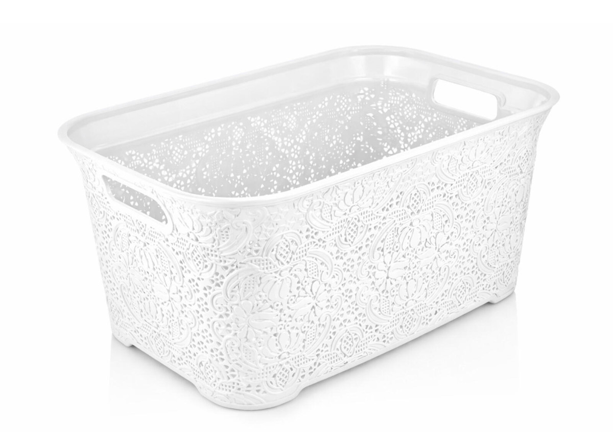 Koš na čisté prádlo vám pomůže udržet pořádek a čistotu a zároveň si vzhledem ke svému rozměru poradí i s velkou kupou prádla. Dvě boční držadla zajístí, že se vám bude koš snadno nosit 35 l Výška přepravní: 25 cm Šířka přepravní: 54 cm Hloubka přepravní: 36 cm Objem přepravní: 48,6 dm3 Hmotnost přepravní: 0,805 kg Pozor křehké: