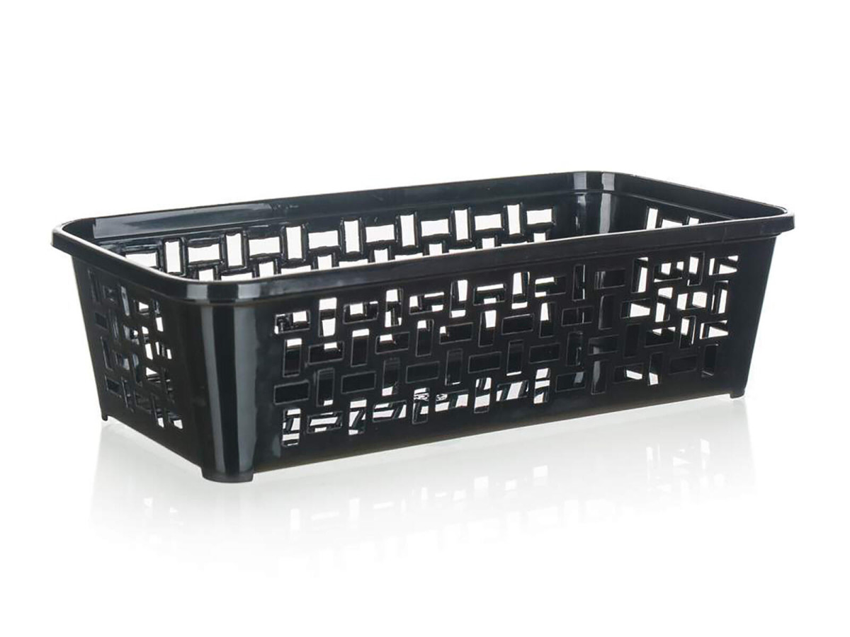 Košíček plastový 19 x 9,7 x 5 cm je vhodným organizérem vašich věcí. Košíček lze příčně vkládat do košíčku velikosti 30 x 20 cm, čímž dojde k vytvoření mezipatra a lepší organizace prostoru. Výška přepravní: 5,5 cm Šířka přepravní: 10 cm Hloubka přepravní: 19 cm Objem přepravní: 1,045 dm3 Hmotnost přepravní: kg Pozor křehké: