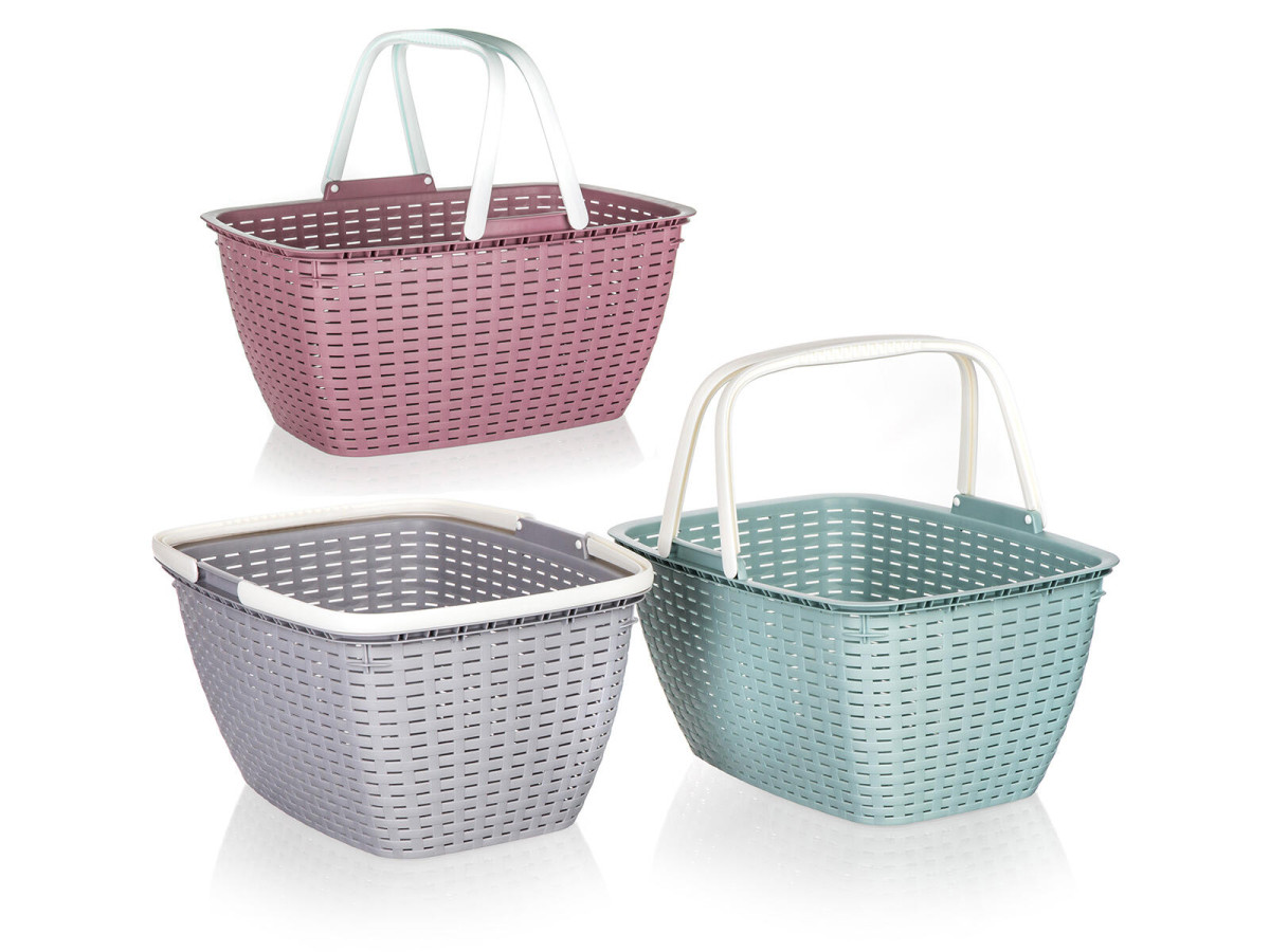 Košík nákupní plastový ACASSA 17 l, mix barev je vhodný na přenášení nákupu do hmotnosti 10 kg. Assort barev. Rozměr: 44 x 32 x 22 cm, objem: 17 l. Výška přepravní: 21 cm Šířka přepravní: 32 cm Hloubka přepravní: 44 cm Objem přepravní: 29,568 dm3 Hmotnost přepravní: kg Pozor křehké: