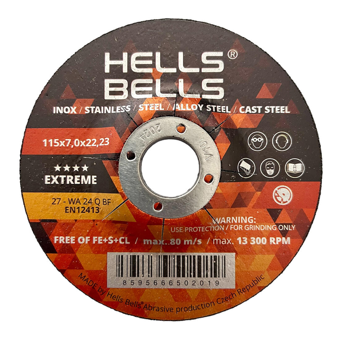 Kotouč brusný na ocel 115 x 7 x 22,2 mm. rozměry: 115 x 7 x 22,2 mm Brusné kotouče Hells Bells s bakelitovým pojivem jsou vyrobeny z prémiového korundového zrna, které je zárukou agresivního brusu a dlouhé životnosti. Neobsahují stopy železa, chlóru a síry. Jsou určeny pro broušení uhlíkových ocelí, konstrukčních ocelí a nerezových ocelí. Šířka přepravní: 11,5 cm Výška přepravní: 0,7 cm Hloubka přepravní: 11,5 cm Objem přepravní: 0,092575 dm3 Hmotnost přepravní: 0,17032 kg Pozor křehké: GPSR: